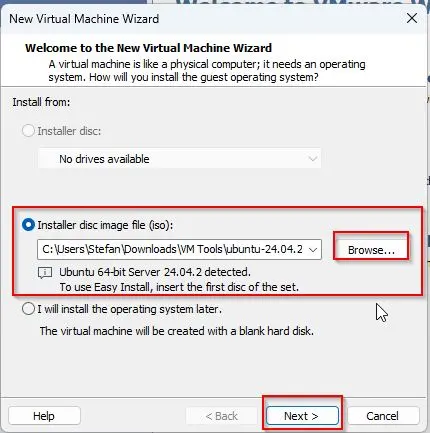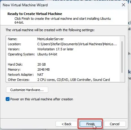 Deshalb machte ich mich auf die Suche nach Alternativen. Gelandet bin ich bei einer Lösung mit einer Virtuellen Maschine, auf der ich einen Ubuntu Server installiere, der wiederum einen Apache Webserver und eine Mariadb Datenbank bereitstellt. Mein lokaler Heimwebserver ist genauso aufgesetzt, so dass ich nichts Neues lernen musste. Zuerst habe ich mit VirtualBox gespielt. Hier war jedoch die Performance am Ende ziemlich lahm. Ich hab meinen besten Freund, ChatGPT gefragt und dieser riet mir zu einer Lösung mit VMware Player. Er half mir sogar, die VirtualBox Harddisk in eine VMware Harddisk zu konvertieren, so dass ich den Server nicht neu aussetzen musste. Um diesen Bericht zu dokumentieren, habe ich dann doch eine neue virtuelle Maschine installiert. Und das geht so: