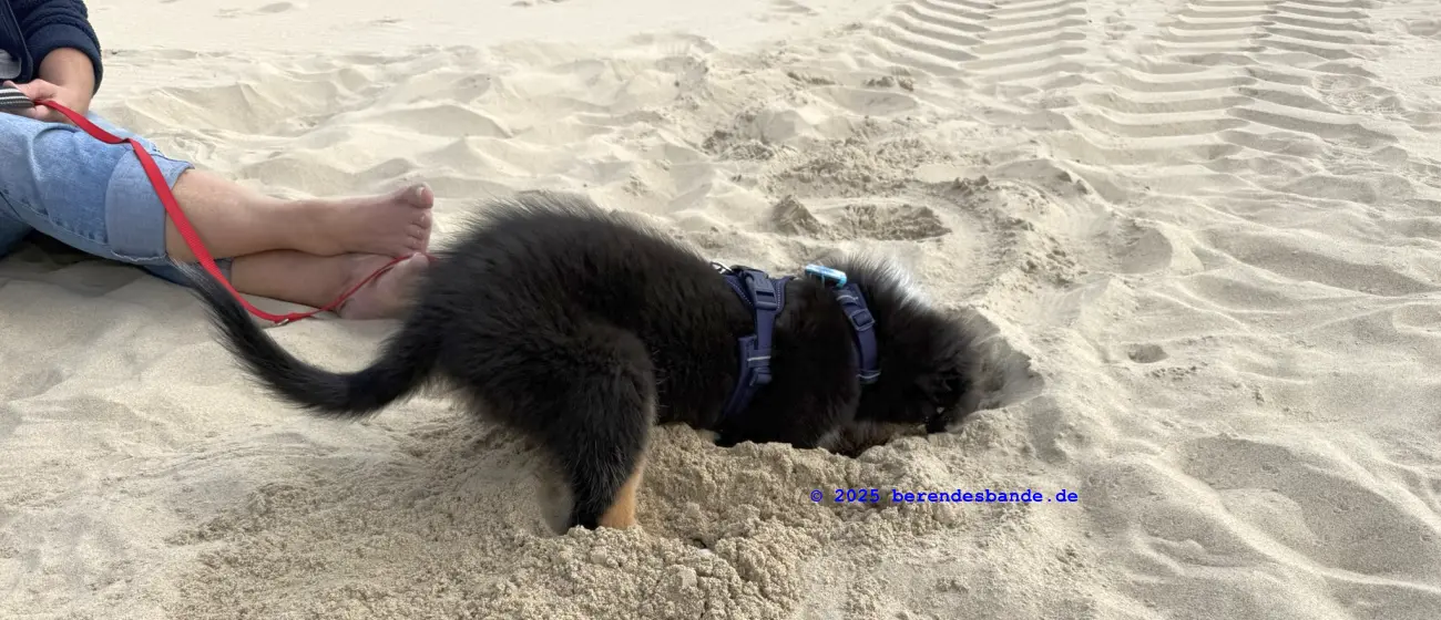Wir nutzten die kurze Auszeit, um unserem neuen Rudelmitglied Skye an den Campingalltag zu gewöhnen. Dem kleinen Kerl hat das Campen sichtlich gefallen. Bei Meer und Strand ist er voll in seinem Element. Uns hat die kurze Auszeit gut getan. Leider zeigte sich das Wetter nicht von seiner besten Seite, aber so spät im Jahr konnten wir froh sein, dass es weitgehend trocken war. Wir konnten einen Tag am Strand buddeln und ansonsten Strandspaziergänge unternehmen.